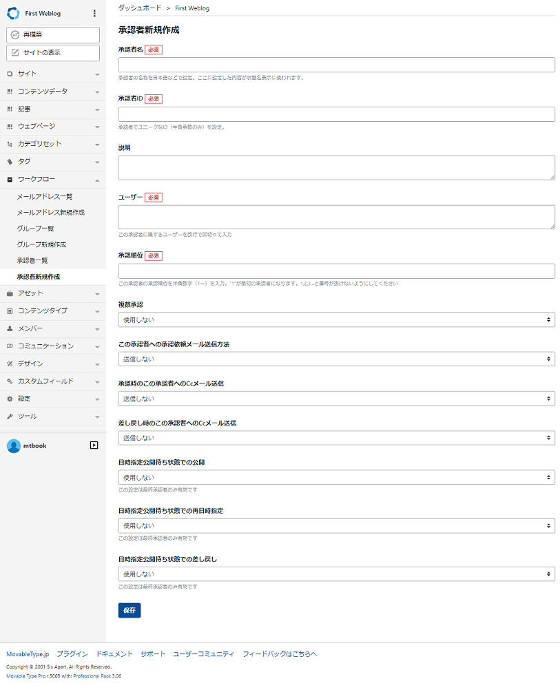 - 説明:承認者名の説明を入力