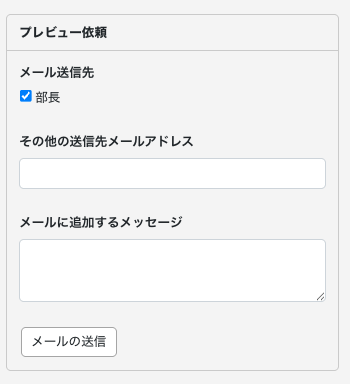 プレビュー者を登録していない状態でも、次に説明する画面から1名に限ってプレビュー依頼メールを送信することができます。