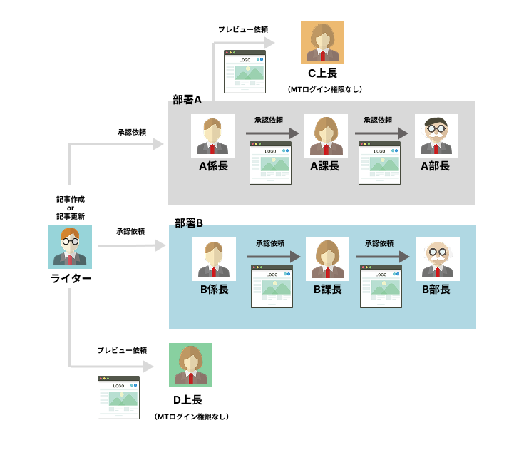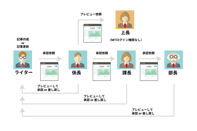 - 複数承認の場合、上位承認者やライターへのメールは、同順位で最後に承認したユーザからのみ送信されます。